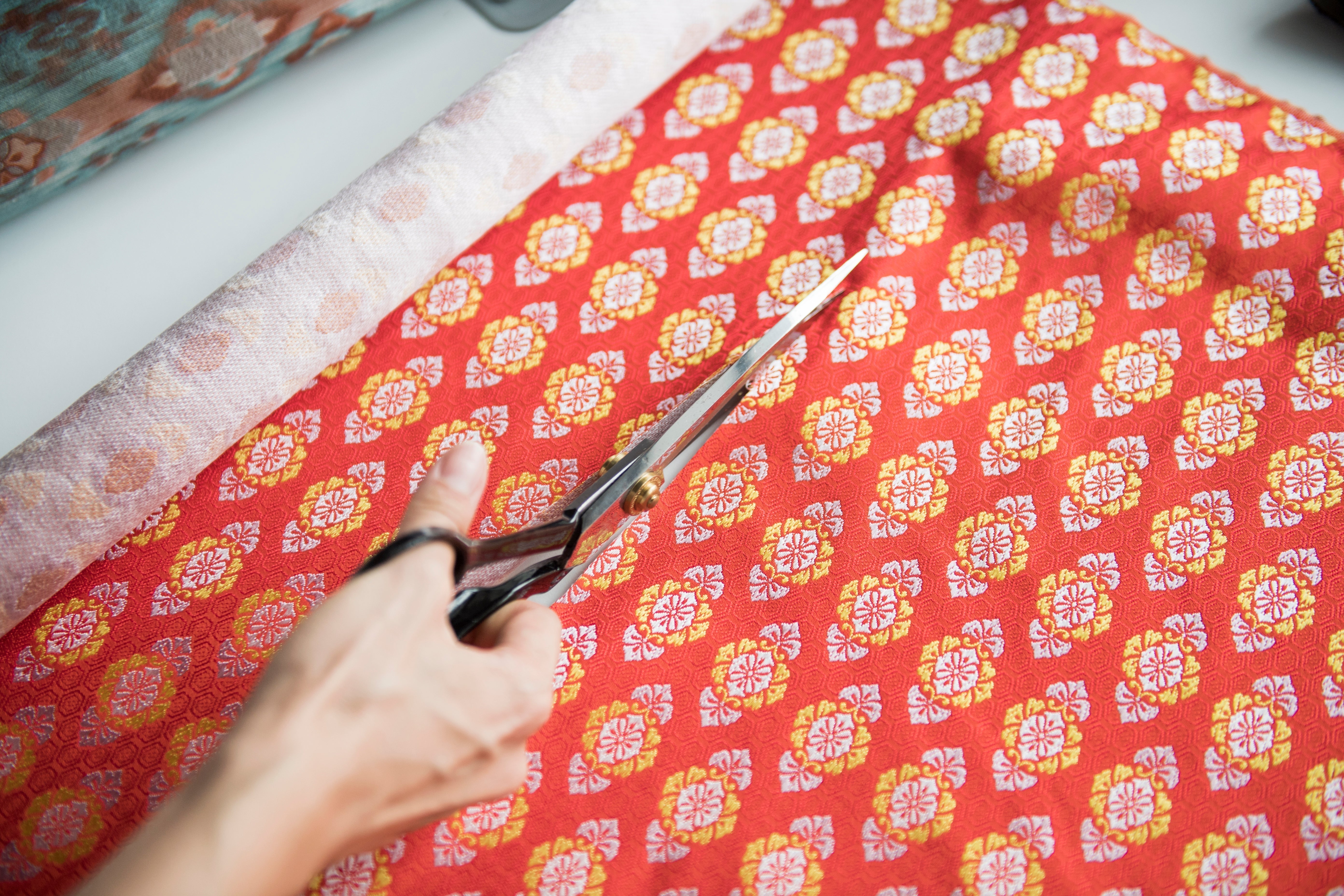 雛人形や五月人形の魅力を大きく左右するのが衣裳です。五色では京都・西陣の老舗織元に特別注文した金襴をはじめ、選び抜かれた裂地を使用しています。