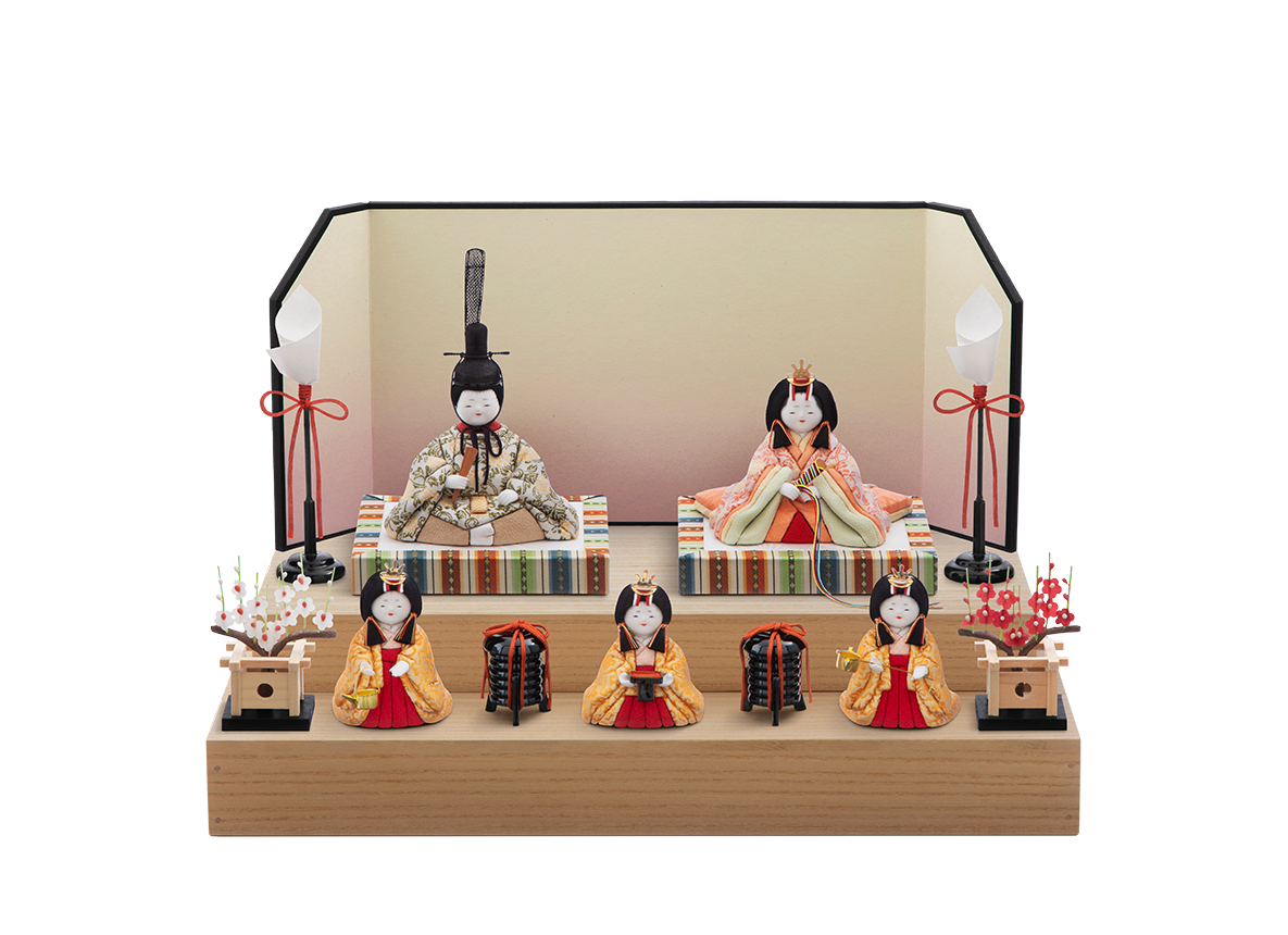 収納にも困らないと好評の、コンパクトで平らな飾り台にスッキリとした屏風をのせてお飾りする雛人形セットです。