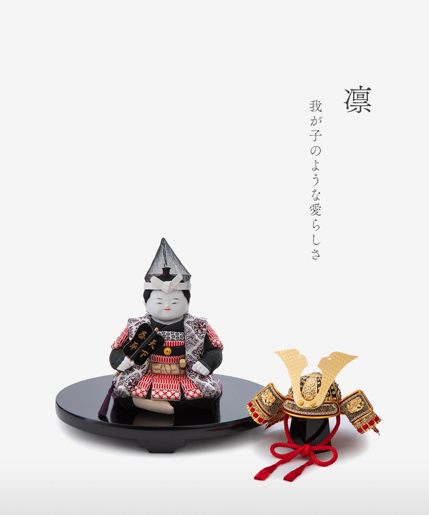 小さな机や玄関などにもお飾りできる、コンパクトな五月人形です。悠然とした面持ちで軍配を手にし、大勢を見守る若将の凛々しい姿は、まさに動ぜず・騒がずの心持ち。その昔五月人形とは、大切な我が子に対し、ある