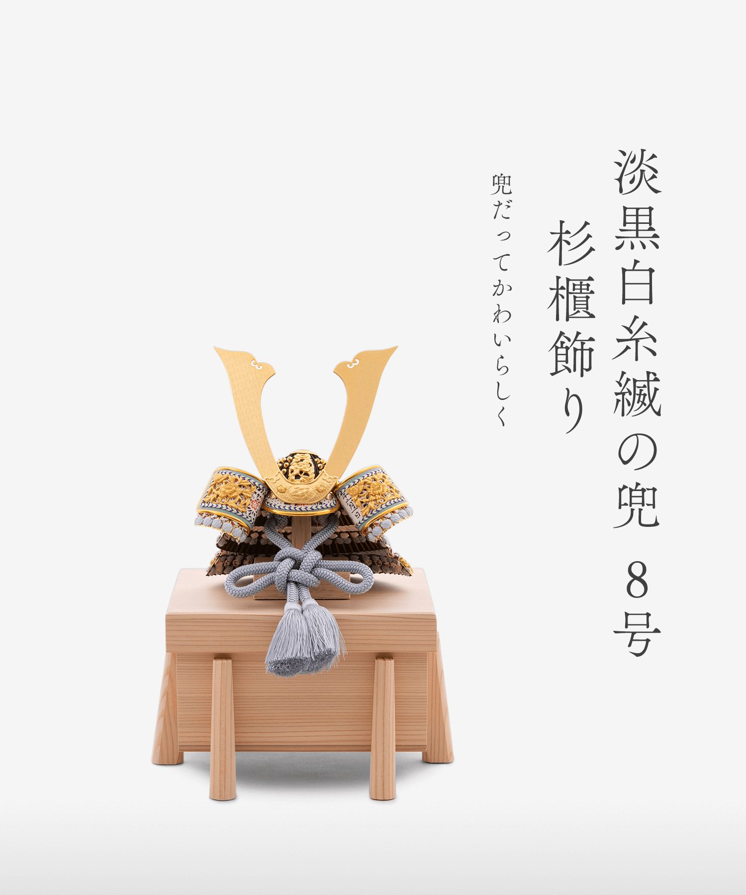 淡黒白糸縅の兜 8号 杉櫃飾り