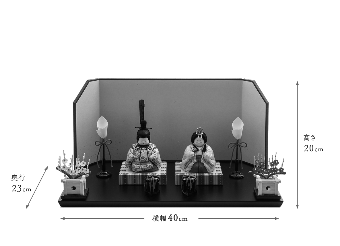 飾り台やお屏風が選べる、コンパクトシリーズの雛人形です。おだやかな表情、生まれたばかりの赤ちゃんをイメージさせる小さくて丸々としたフォルムは、木目込み人形ならではの雛人形です。小ぶりでも確かなお作りは各部分に表れています。ふんわりと空気を包みこむ、なめならかな髪型やお衣装の美しさが特徴で、上品な雰囲気のお衣装が人気のお雛様です。組み立て不要の平らな飾り台に、落ち着いた色合いの屏風をのせてお飾りするセットです。