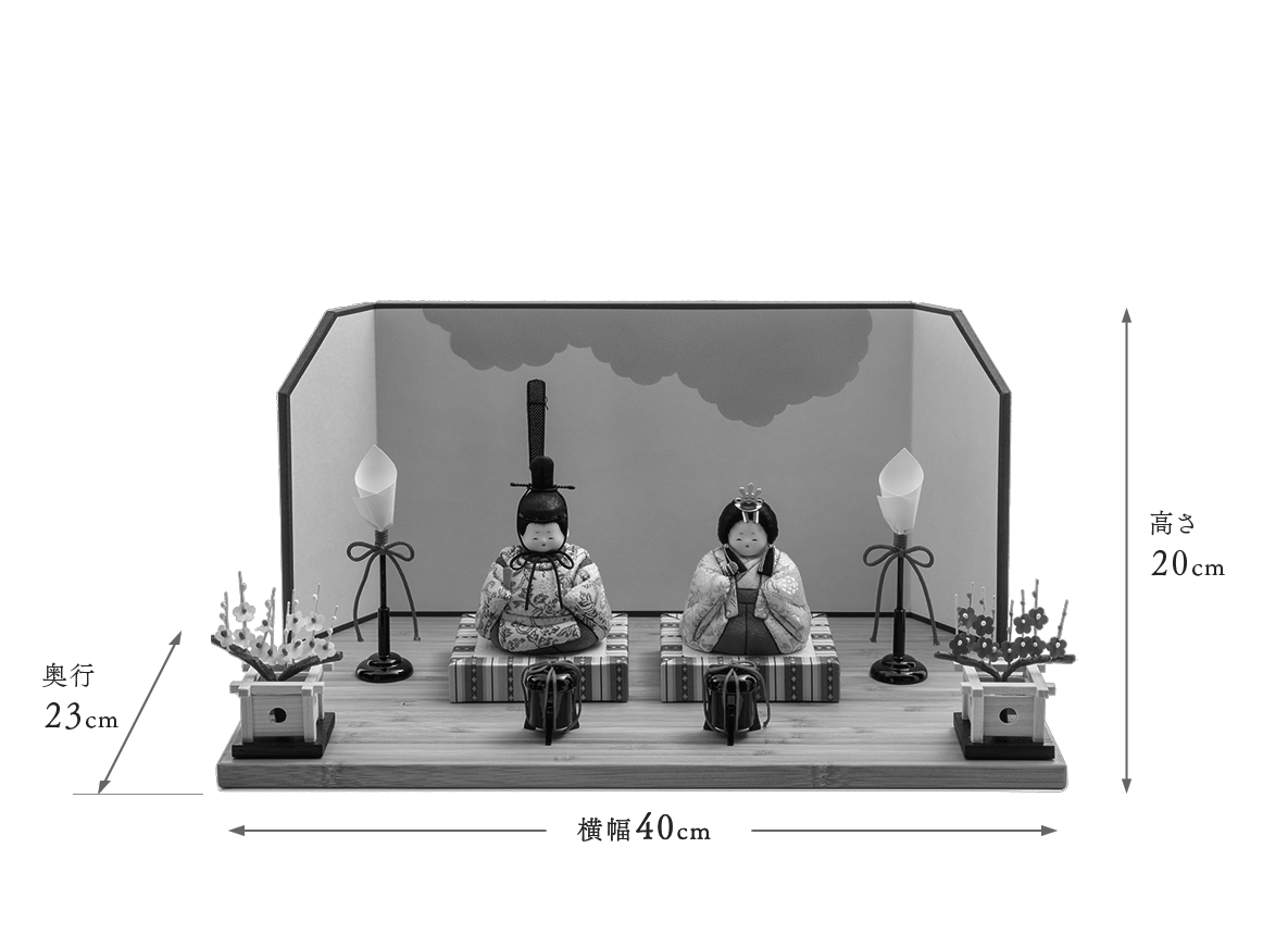 飾り台やお屏風が選べる、コンパクトシリーズの雛人形です。おだやかな表情、生まれたばかりの赤ちゃんをイメージさせる小さくて丸々としたフォルムは、木目込み人形ならではの雛人形です。小ぶりでも確かなお作りは各部分に表れています。ふんわりと空気を包みこむ、なめならかな髪型やお衣装の美しさが特徴で、上品な雰囲気のお衣装が人気のお雛様です。組み立て不要の平らな飾り台に、落ち着いた色合いの屏風をのせてお飾りするセットです。