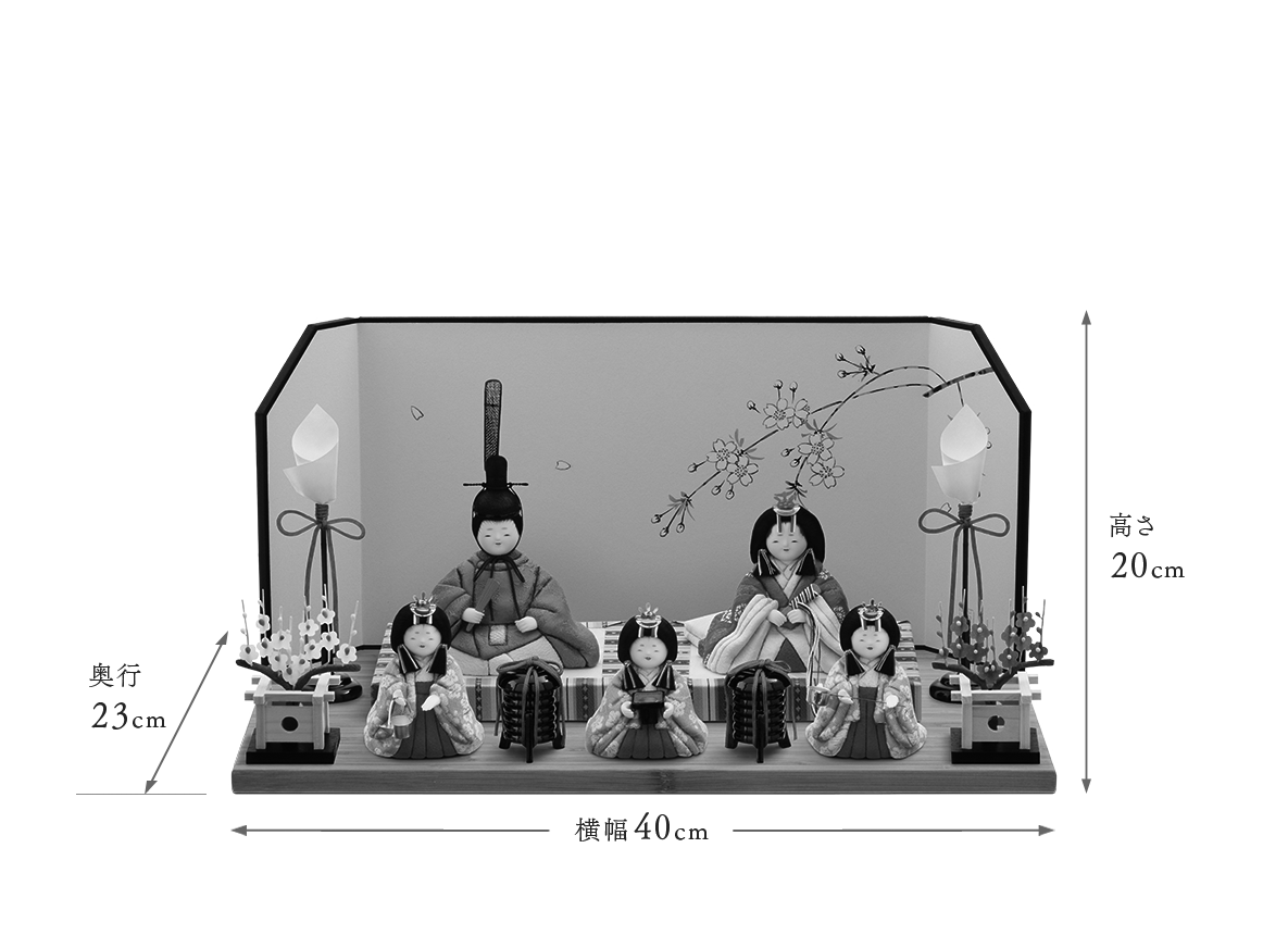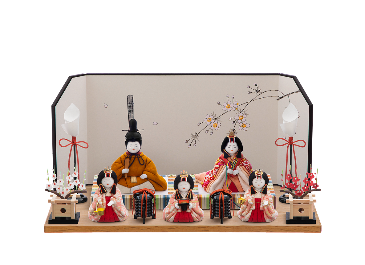 殿姫同様に、お子様の行く末頼もしい成長を見守る三人官女は、雛人形の華やかでいながら厳かな味わいを豊かにします。かわいいだけでは終わらない、伝えるべき大切な日本文化の美しさをこの場へ現出させてくれます。雛人形として欠かせない三人官女も私たちのこだわりです。収納にも困らないと好評の、コンパクトで軽い平らな飾り台にスッキリとした屏風をのせてお飾りする雛人形セットです。