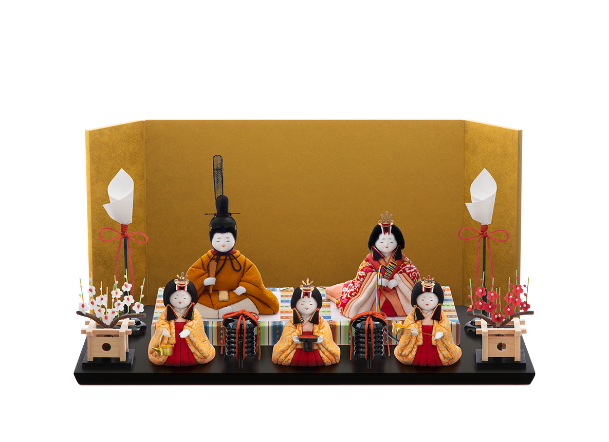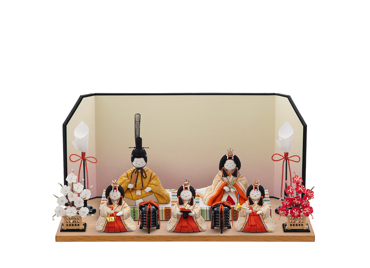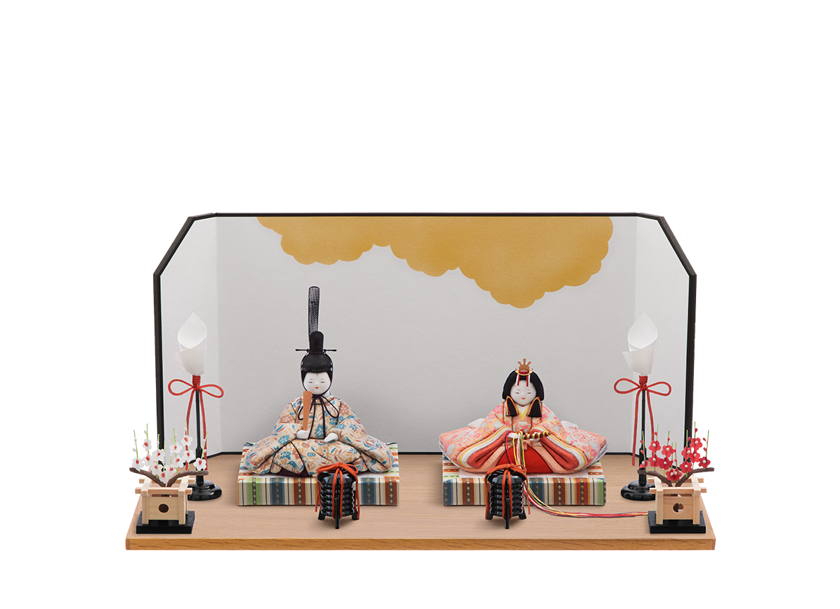 殿姫同様に、お子様の行く末頼もしい成長を見守る三人官女は、雛人形の華やかでいながら厳かな味わいを豊かにします。かわいいだけでは終わらない、伝えるべき大切な日本文化の美しさをこの場へ現出します。雛人形として欠かせない三人官女も私たちのこだわりです。収納にも困らないと好評の、コンパクトで軽い平らな飾り台にスッキリとした屏風をのせてお飾りする雛人形セットです。