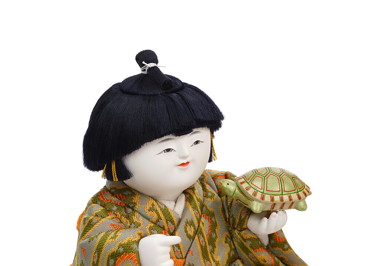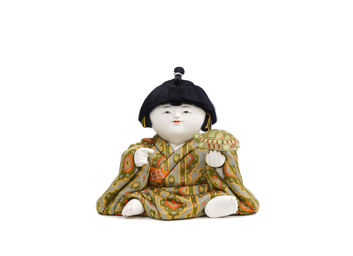 五色・原孝洲が大切にしている作品群です。お節句飾りとはまた一味違うお人形さんたちで根強い人気を誇ります。最近では海外の方へのおみやげにも人気のシリーズです。「長寿」や「幸運」を象徴とする亀は、古来より生活の中でデザインにも取り込まれた馴染みのある生き物です。愛らしく縁起の良い御所人形と亀との取り合わせは贈り物やお土産に最適です。