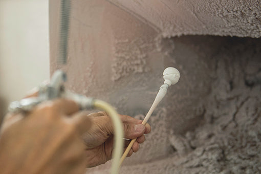 お人形の白い肌を表現するために、平安の昔から今も変わらず胡粉(ごふん)は欠かせません。初代・米洲から受け継いだお人形の白い肌は、貝殻を砕いてつくる胡粉にお湯で溶かした“にかわ”を混ぜたものを、頭全体にきめ細かく吹き付けて仕上げます。そのため輝くような透明感のある白い肌が完成します。