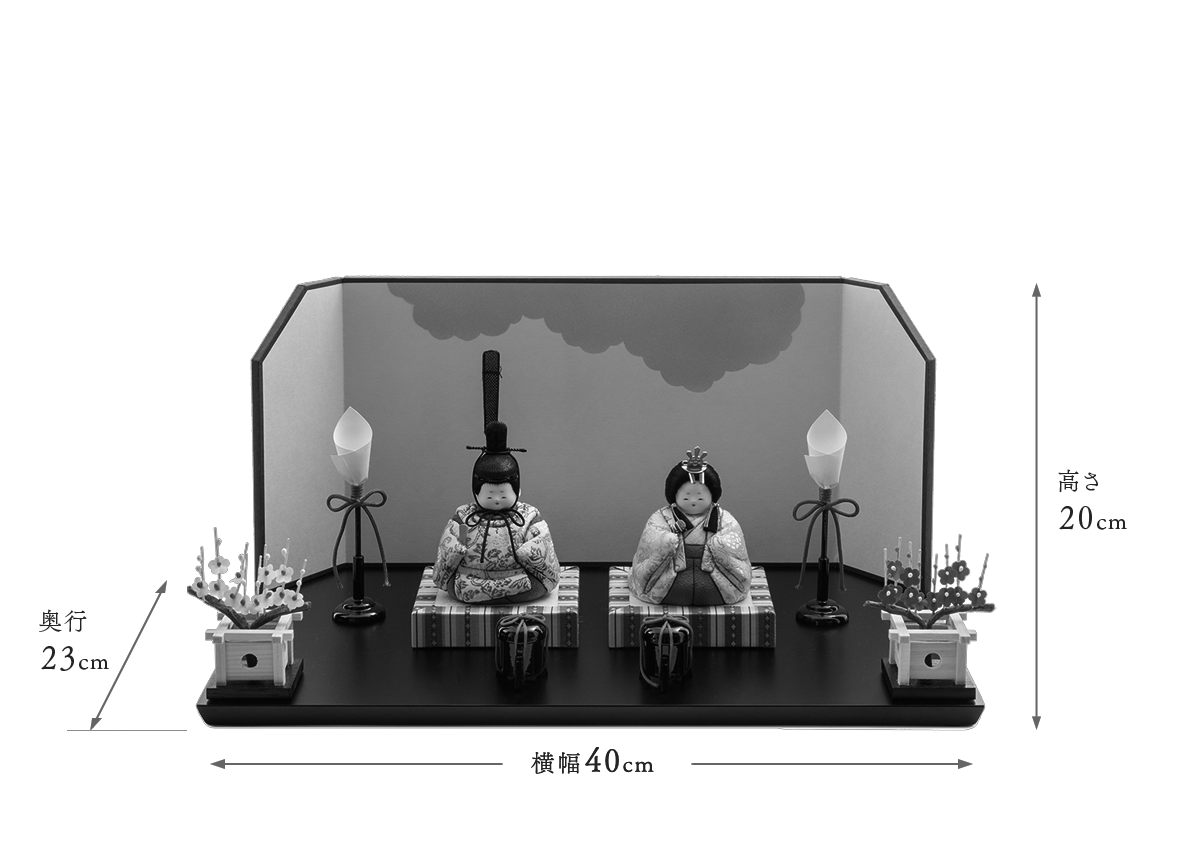飾り台やお屏風が選べる、コンパクトシリーズの雛人形です。おだやかな表情、生まれたばかりの赤ちゃんをイメージさせる小さくて丸々としたフォルムは、木目込み人形ならではの雛人形です。小ぶりでも確かなお作りは各部分に表れています。ふんわりと空気を包みこむ、なめならかな髪型やお衣装の美しさが特徴で、上品な雰囲気のお衣装が人気のお雛様です。組み立て不要の平らな飾り台に、落ち着いた色合いの屏風をのせてお飾りするセットです。