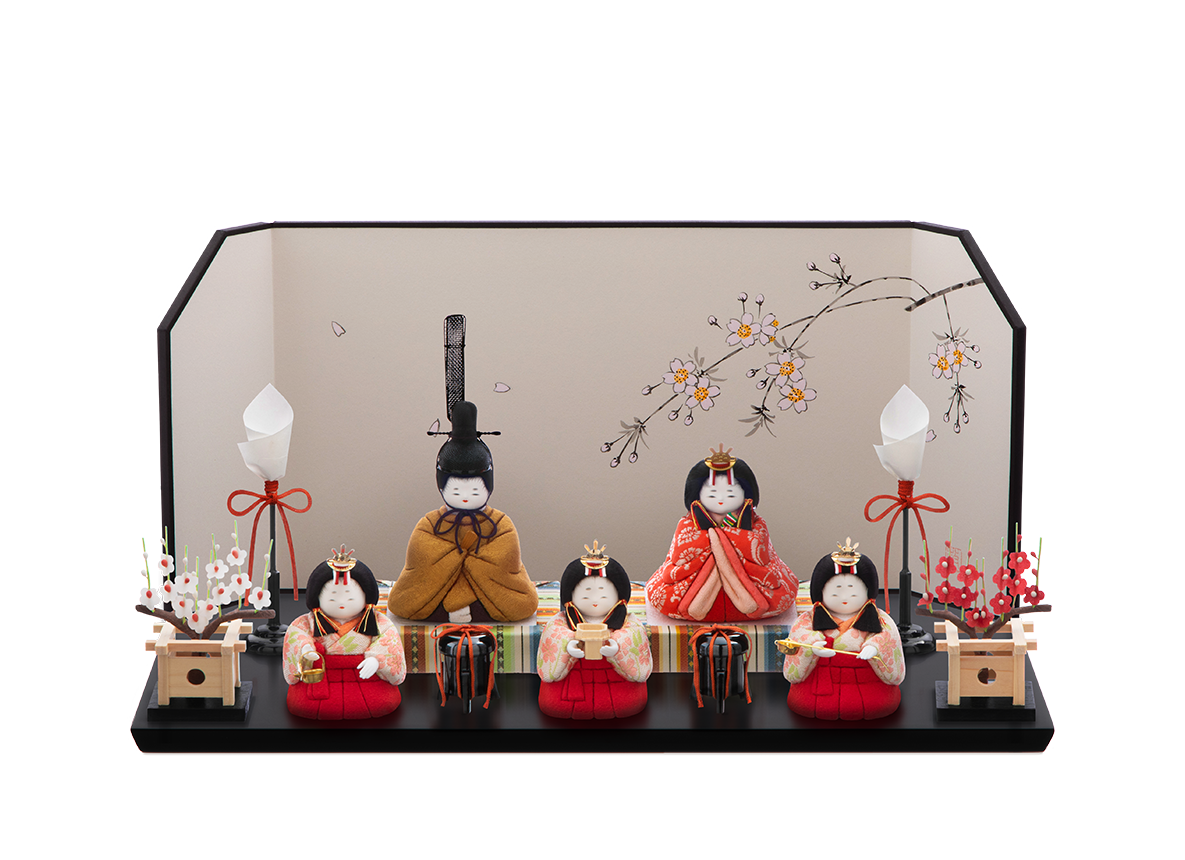 飾り台やお屏風が選べる、コンパクトシリーズの雛人形です。純真無垢な赤ちゃんをイメージさせる小さくて丸々としたフォルムに、両袖を合わせた愛らしいお姿は木目込み人形ならではのスタイルです。 小ぶりでも本格の作り。例えばふんわりと空気をまとう技術となめらかな絹糸を使用した髪型は、美しくも可憐なお雛様をより一層引き立たせます。かわいらしさのなかに上品さをも秘めた手描きのお顔が人気です。お衣装は2種類のご用意。殿姫同様に、お子様の行く末頼もしい成長を見守る三人官女は、雛人形の華やかでいながら厳かな味わいを豊かにします。かわいいだけでは終わらない、伝えるべき大切な日本文化の美しさをこの場へ現出させてくれます。欠かせない三人官女も私たちのこだわりです。組み立て不要の平らな飾り台に、シンプルなデザインの屏風をのせてお飾りする、上品でおしゃれな雛人形です。