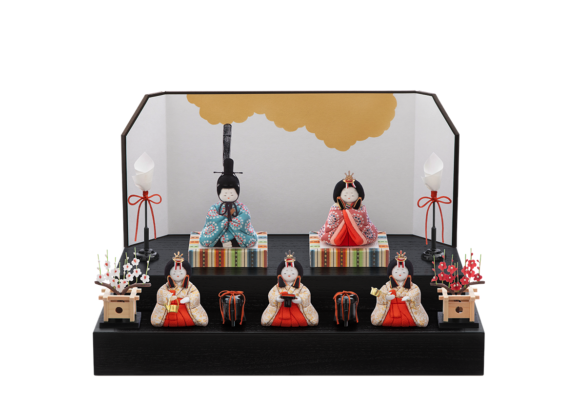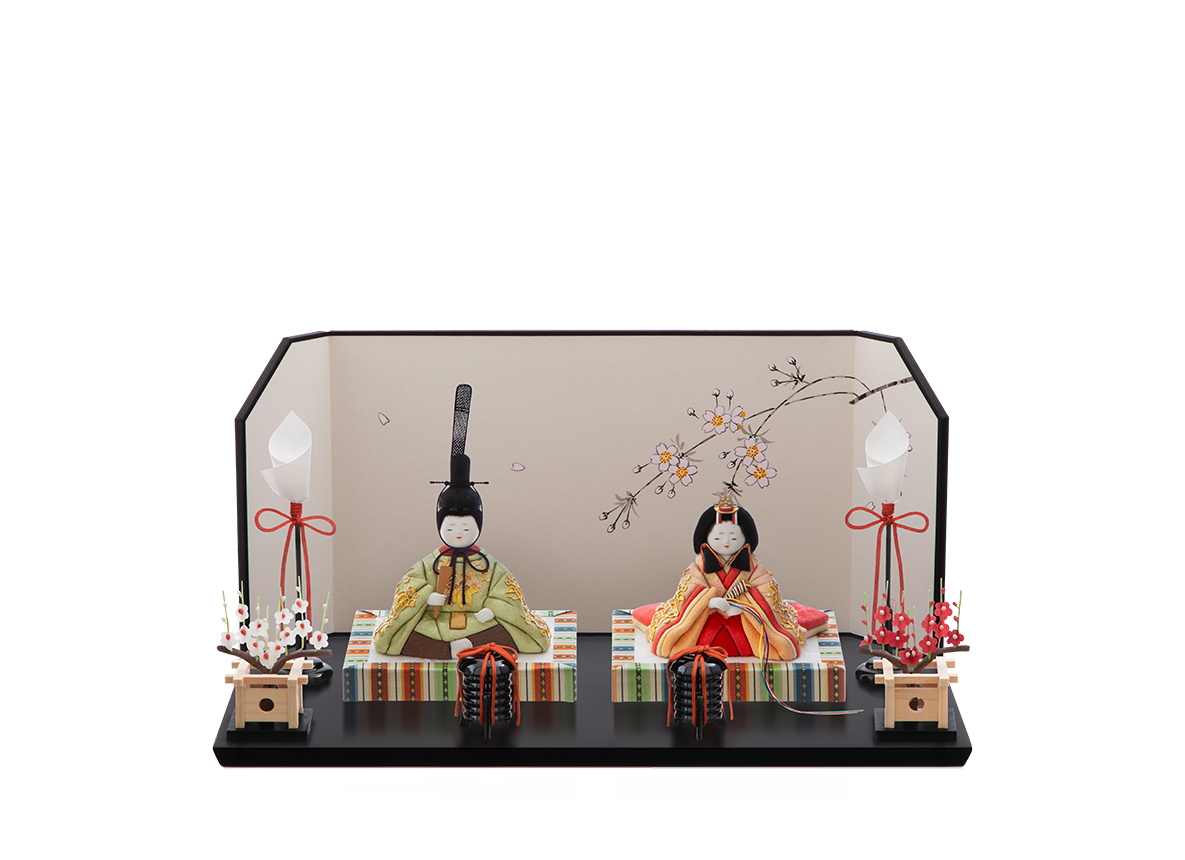 殿姫同様に、お子様の行く末頼もしい成長を見守る三人官女は、雛人形の華やかでいながら厳かな味わいを豊かにします。かわいいだけでは終わらない、伝えるべき大切な日本文化の美しさをこの場へ現出させてくれます。欠かせない三人官女も私たちのこだわりです。組み立て不要の平らな飾り台に、シンプルなデザインの屏風をのせてお飾りする、上品でおしゃれな雛人形です。