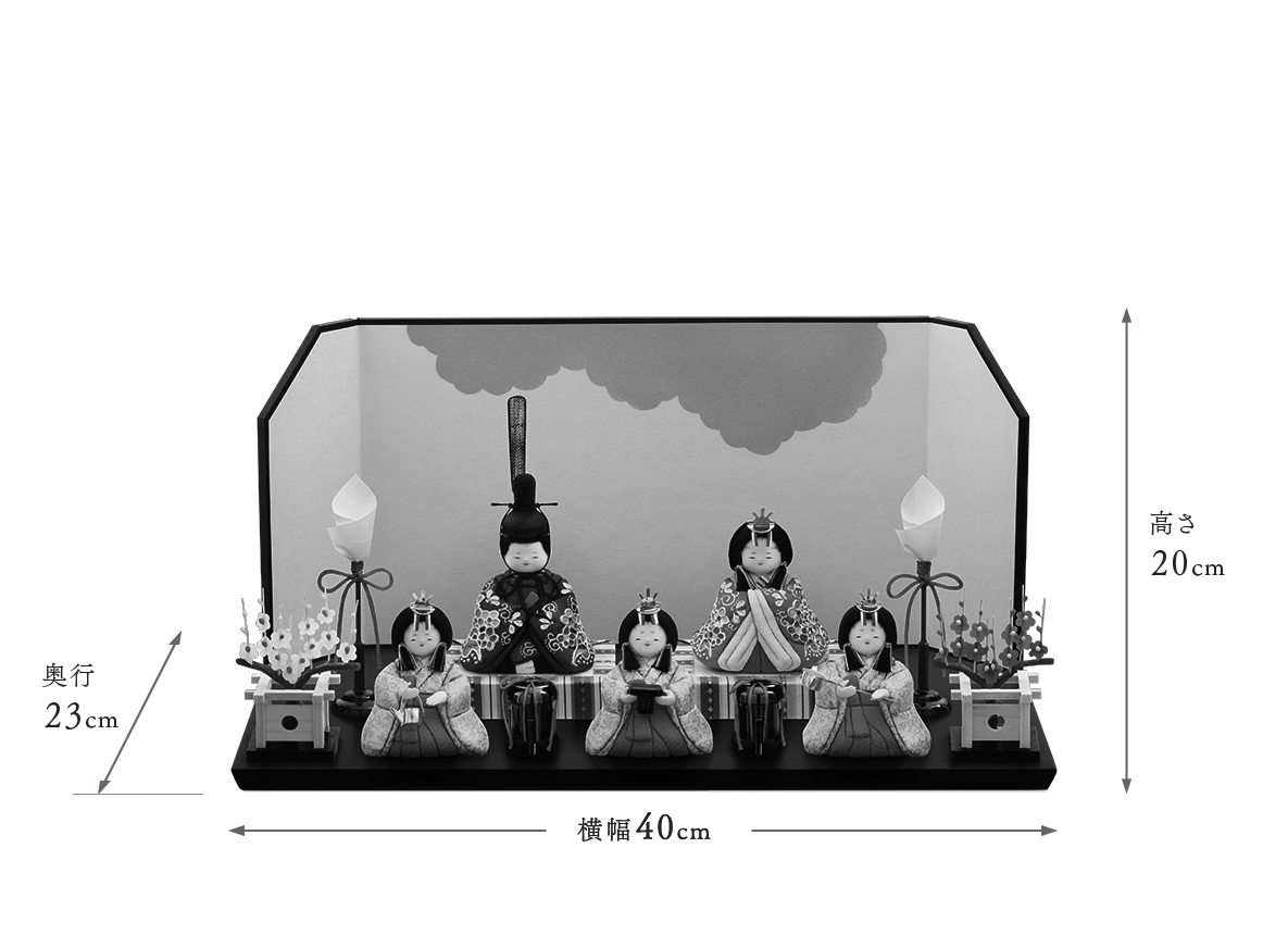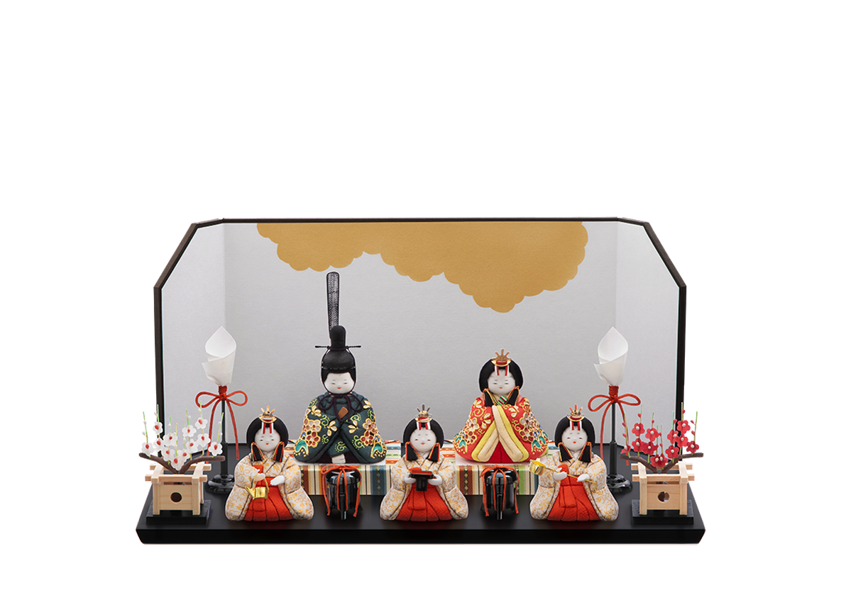 殿姫同様に、お子様の行く末頼もしい成長を見守る三人官女は、雛人形の華やかでいながら厳かな味わいを豊かにします。かわいいだけでは終わらない、伝えるべき大切な日本文化の美しさをこの場へ現出させてくれます。欠かせない三人官女も私たちのこだわりです。組み立て不要の平らな飾り台に、シンプルなデザインの屏風をのせてお飾りする、上品でおしゃれな雛人形です。