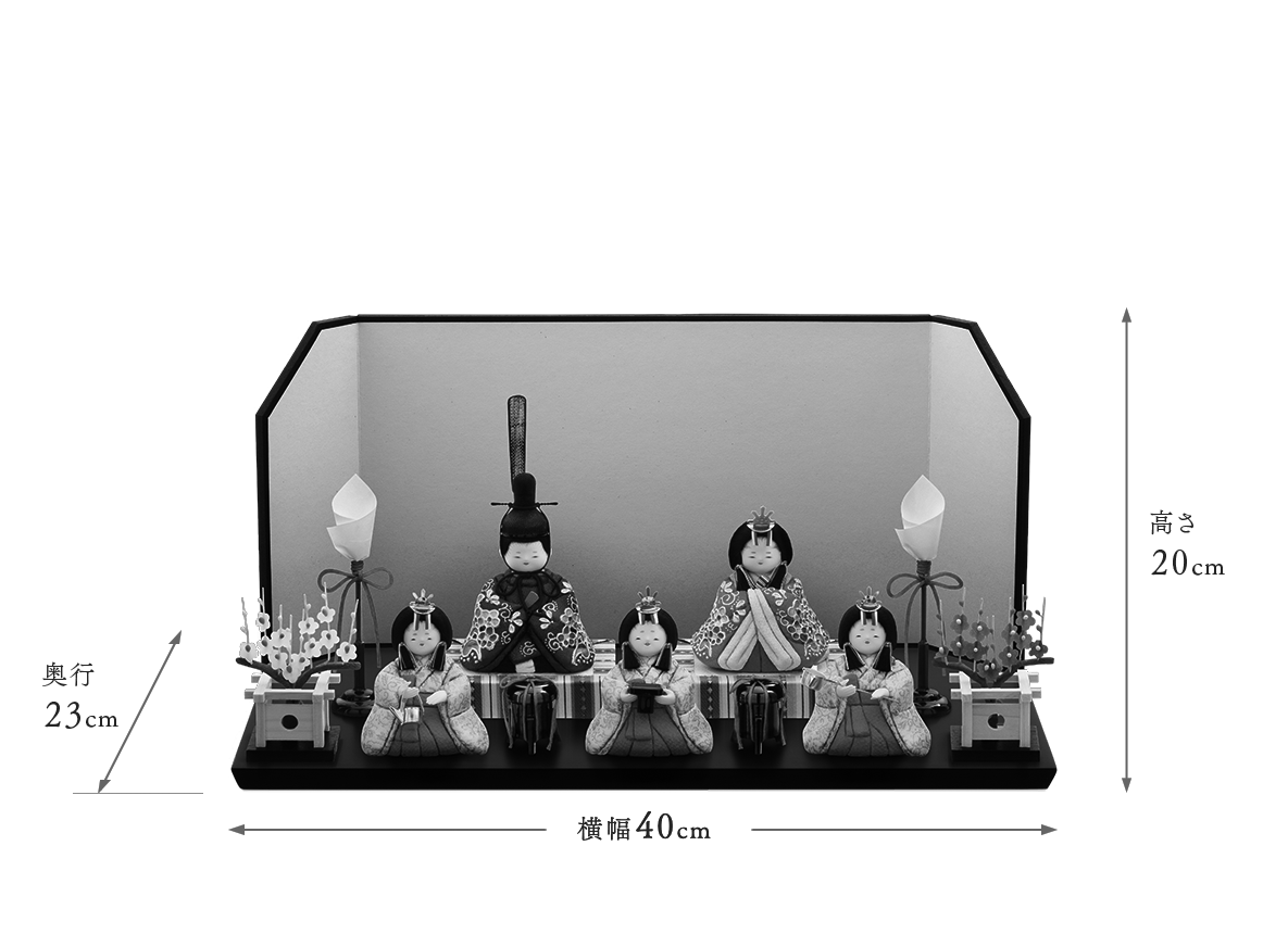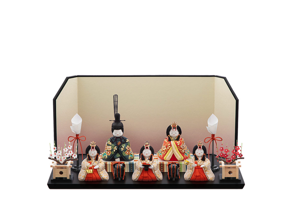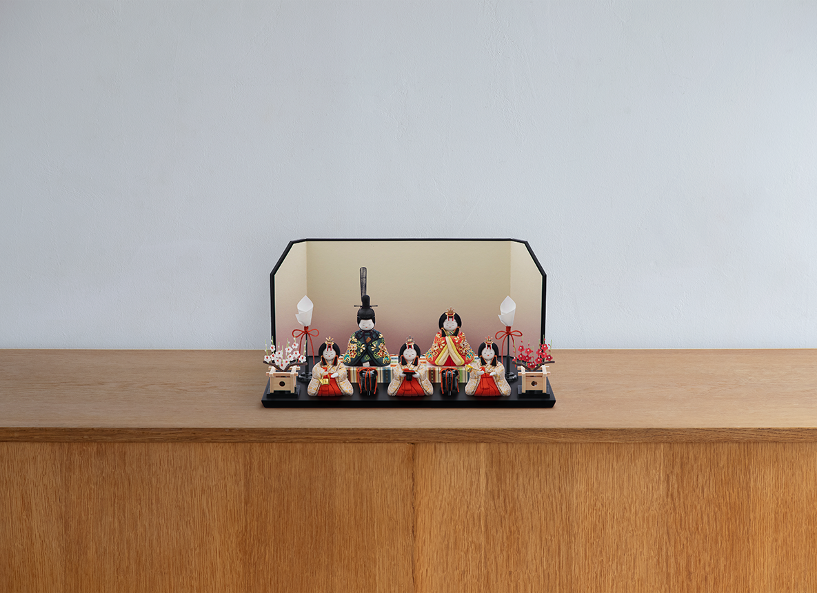 殿姫同様に、お子様の行く末頼もしい成長を見守る三人官女は、雛人形の華やかでいながら厳かな味わいを豊かにします。かわいいだけでは終わらない、伝えるべき大切な日本文化の美しさをこの場へ現出させてくれます。欠かせない三人官女も私たちのこだわりです。組み立て不要の平らな飾り台に、シンプルなデザインの屏風をのせてお飾りする、上品でおしゃれな雛人形です。