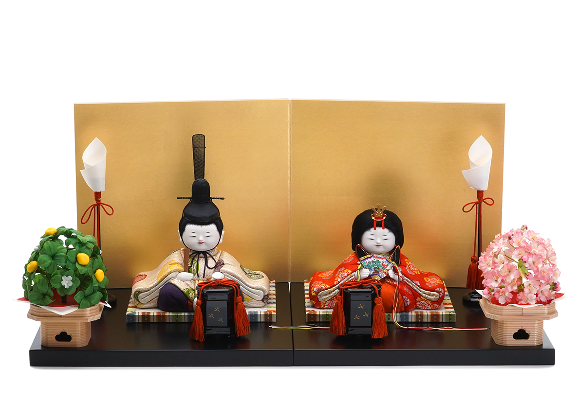 大きな丸顔という特徴あるお顔だちは見る方々にとって、お子様のようなかわいさ、純真無垢な麗しさ、凛としたおごそかさを持ち合わせるなど、様々に感性に訴える特別な味わいがあります。丸い大きなお顔へ、笹目(ささめ)と呼ばれる技法(何十本もの細い線で優しい目元を描く)を用いたお顔が特色で、このお人形ならばこそ表現できる豊かさがあります。お人形の命である美しい髪は、絹糸をたっぷりと丹念に植え込みふっくらと空気を包み込んだ麗しさに見ごたえがあります。人形を引き立たせる金色のお屏風はたたんで、黒色の飾り台の中へ収めることができるので、収納の際にはコンパクトにもなります。可愛らしさの中に深い味わいを秘めた赤ちゃんのような清らかなお顔は、仏像に通ずると言われ見る人の心に和みを生み、優しい気持ちにさせてくれます。わたしたちの歴史とともに歩んできた雛人形が、明るい未来いっぱいのお子様の成長を見守ります。