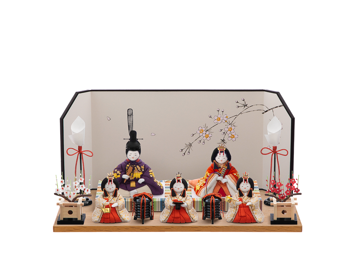 殿姫同様に、お子様の行く末頼もしい成長を見守る三人官女は、雛人形の華やかでいながら厳かな味わいを豊かにします。かわいいだけでは終わらない、伝えるべき大切な日本文化の美しさをこの場へ現出させてくれます。雛人形として欠かせない三人官女も私たちのこだわりです。収納にも困らないと好評の、コンパクトで軽い平らな飾り台にスッキリとした屏風をのせてお飾りする雛人形セットです。