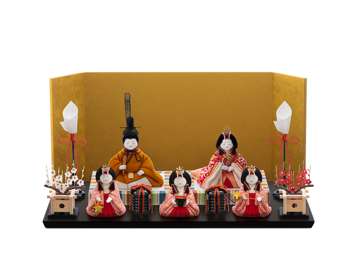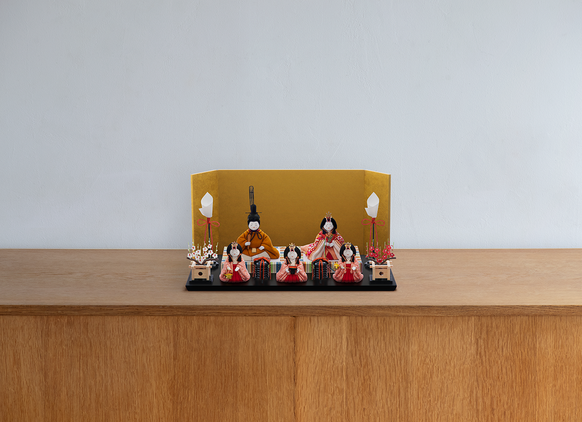 殿姫同様に、お子様の行く末頼もしい成長を見守る三人官女は、雛人形の華やかでいながら厳かな味わいを豊かにします。かわいいだけでは終わらない、伝えるべき大切な日本文化の美しさをこの場へ現出します。雛人形として欠かせない三人官女も私たちのこだわりです。収納にも困らないと好評の、コンパクトで軽い平らな飾り台にスッキリとした屏風をのせてお飾りする雛人形セットです。
