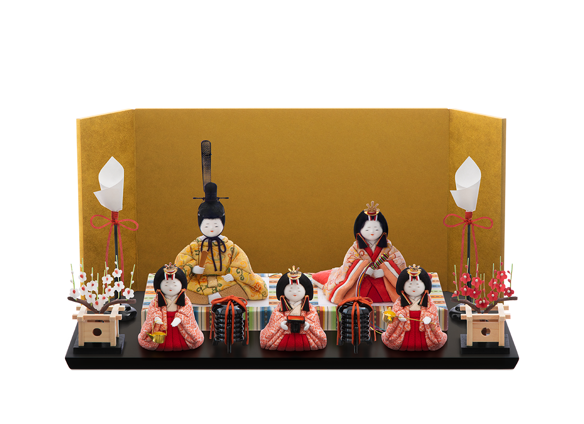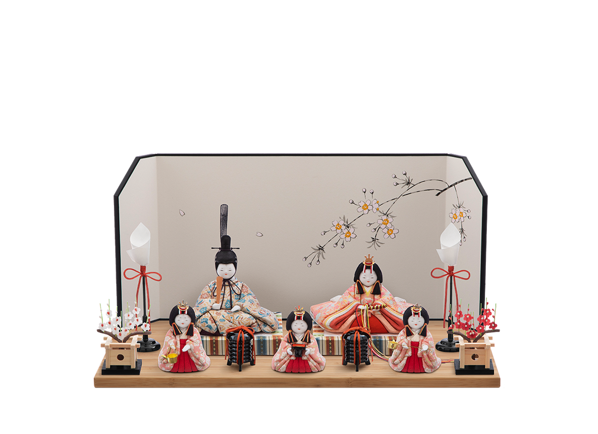 殿姫同様に、お子様の行く末頼もしい成長を見守る三人官女は、雛人形の華やかでいながら厳かな味わいを豊かにします。かわいいだけでは終わらない、伝えるべき大切な日本文化の美しさをこの場へ現出します。雛人形として欠かせない三人官女も私たちのこだわりです。収納にも困らないと好評の、コンパクトで軽い平らな飾り台にスッキリとした屏風をのせてお飾りする雛人形セットです。