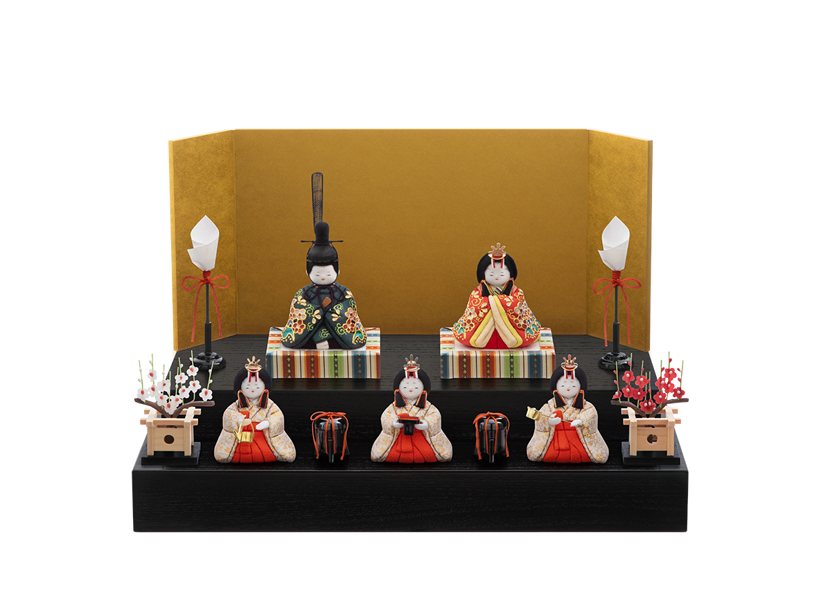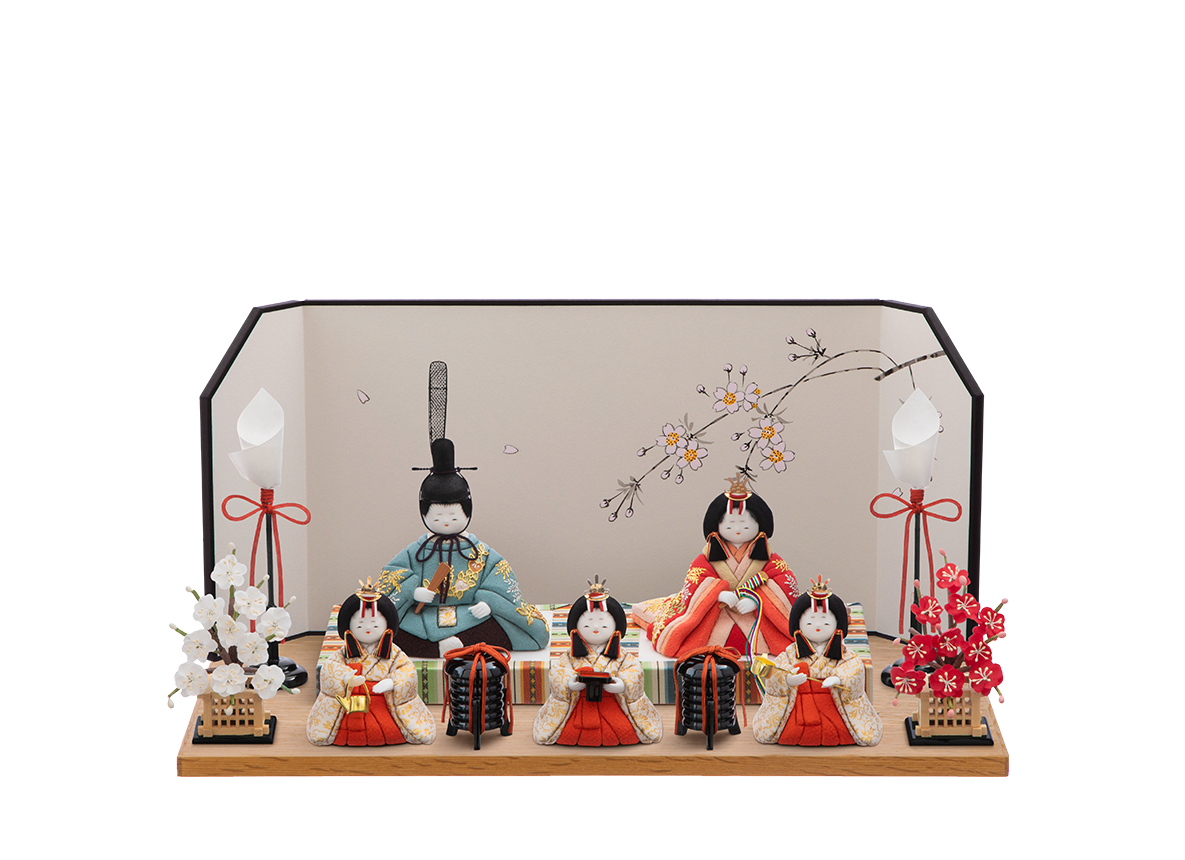 殿姫同様に、お子様の行く末頼もしい成長を見守る三人官女は、雛人形の華やかでいながら厳かな味わいを豊かにします。かわいいだけでは終わらない、伝えるべき大切な日本文化の美しさをこの場へ現出させてくれます。雛人形として欠かせない三人官女も私たちのこだわりです。収納にも困らないと好評の、コンパクトで軽い平らな飾り台にスッキリとした屏風をのせてお飾りする雛人形セットです。