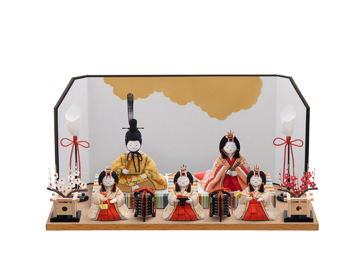 殿姫同様に、お子様の行く末頼もしい成長を見守る三人官女は、雛人形の華やかでいながら厳かな味わいを豊かにします。かわいいだけでは終わらない、伝えるべき大切な日本文化の美しさをこの場へ現出させてくれます。雛人形として欠かせない三人官女も私たちのこだわりです。収納にも困らないと好評の、コンパクトで軽い平らな飾り台にスッキリとした屏風をのせてお飾りする雛人形セットです。