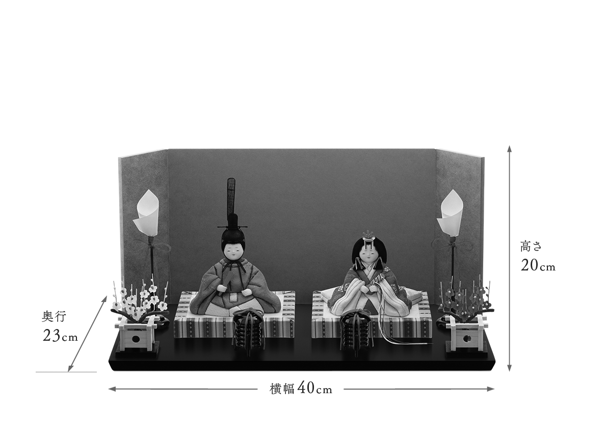 お人形やお道具などゆったりとお飾りいただける飾り台幅45cmの「竹」にご変更可能です。詳細はこちら⇒Topics「萌雛の飾り台_竹につきまして」