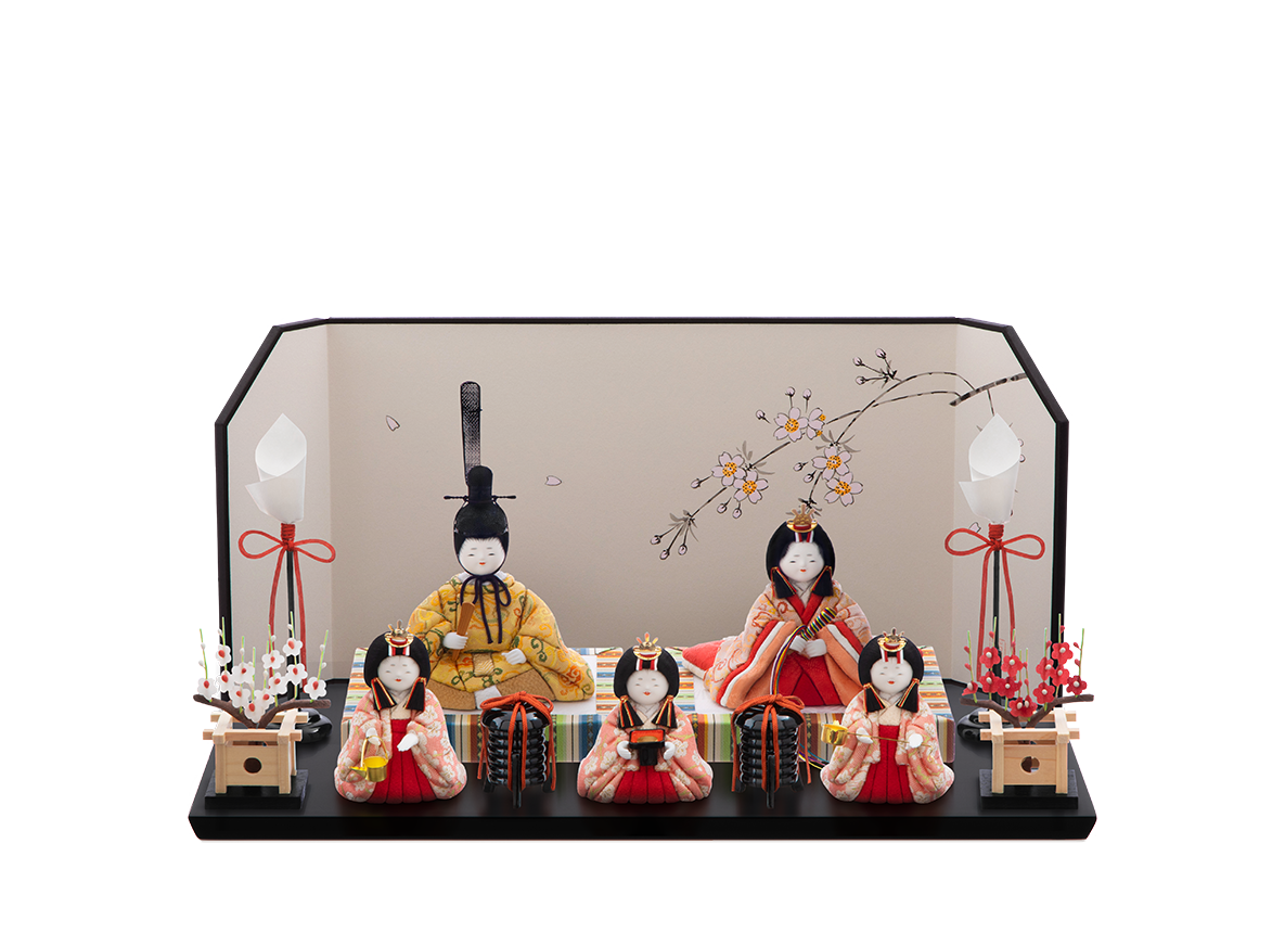 お顔は上品で美しい笑みをたたえた、五色・原孝洲が大切にしている表情です。お飾り方法は収納にも困らないと好評の、コンパクトで平らな飾り台に、そっと屏風をのせてお飾りする雛人形セットです。お子様とご家族が紡ぐ幸せな物語を優しく見守るお雛様です。