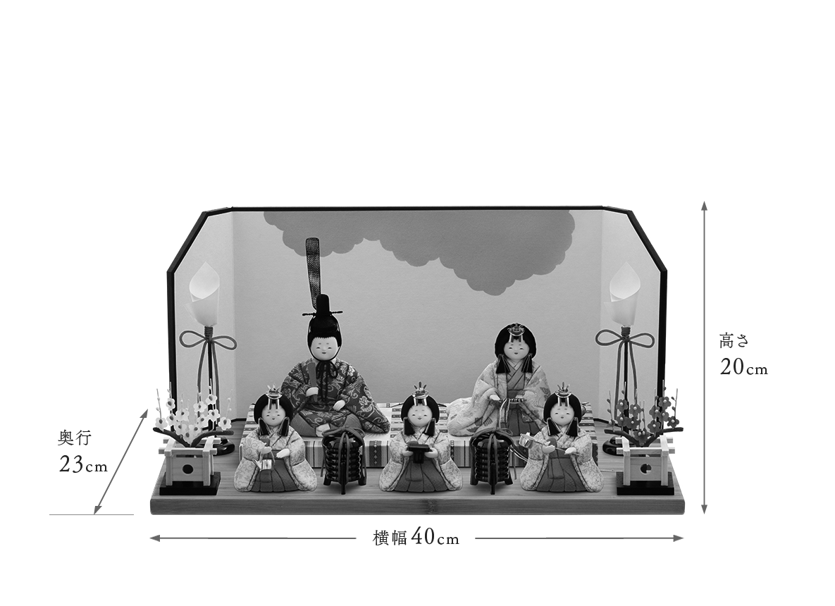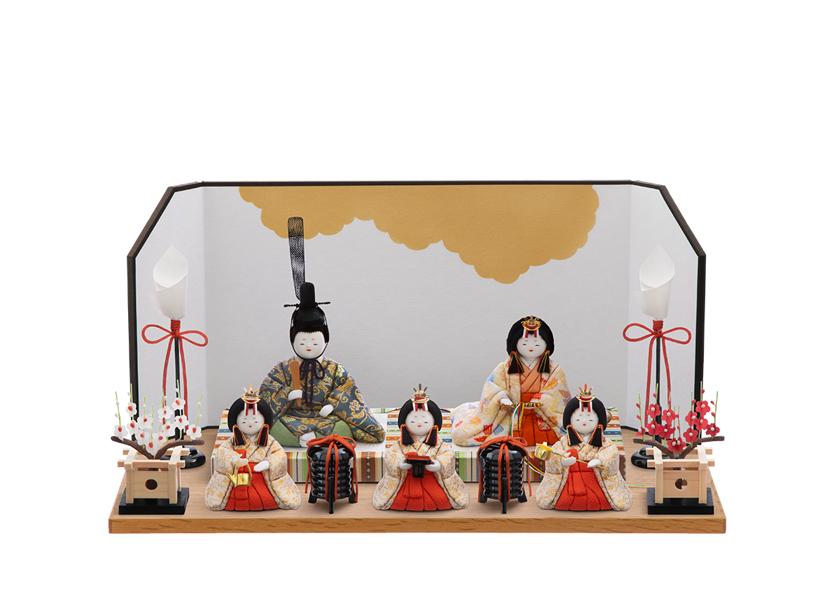 五色・原孝洲を代表するコンパクトなおひなさまです。流行やトレンドに左右されない、凛とした佇まいと上品で愛らしいお顔が人気です。美しい鳳凰(ほうおう)が舞うお衣装はお子さまの門出を祝す証。瑞鳥の鳳凰が縁起よくお子さまの明るい未来を導きます。美しくきめ細かい絹織物の美を感じてください。
