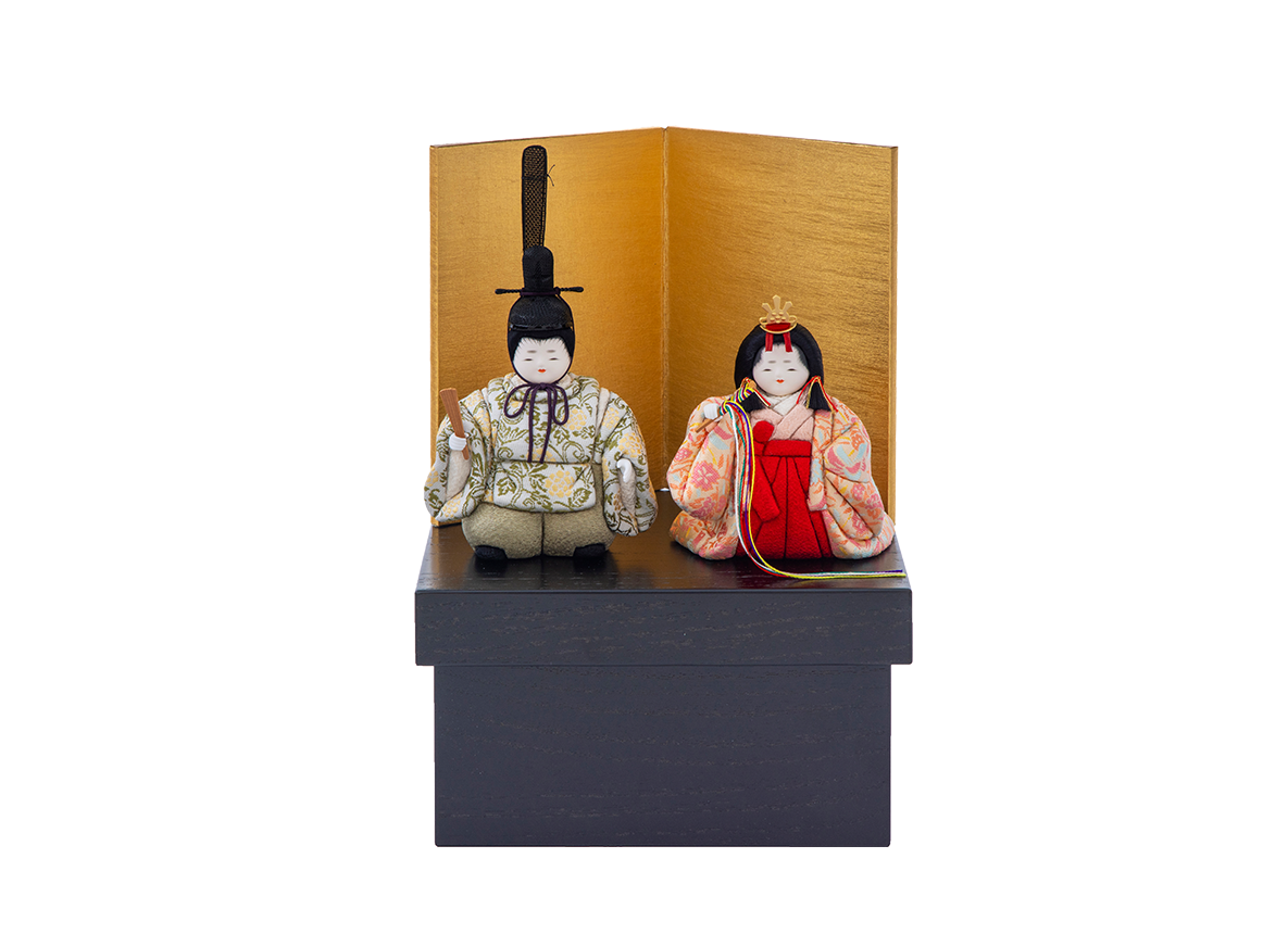 お殿様とお姫様が仲睦まじく寄り添い立つ姿の雛人形は、立雛(たちびな)と言い、はるか昔から愛好されてきた雛人形の形です。古風なスタイルの立雛よりはずっと身近に親しみやすいタイプの立雛です。手の平に乗るほどの小さくコンパクトなお人形サイズで、大変かわいらしい立雛です。柔和なお顔は五色・原孝洲独特のお顔です。かわいい中にもお子様を見守るにふさわしい慈愛に満ちたほほえみをたたえるお顔のお雛さまです。小さな木箱の中でお人形を納める形ですが、これが飾り舞台にもなるうえ、重厚感もあるのでひな祭りがより一層華やかになるでしょう。